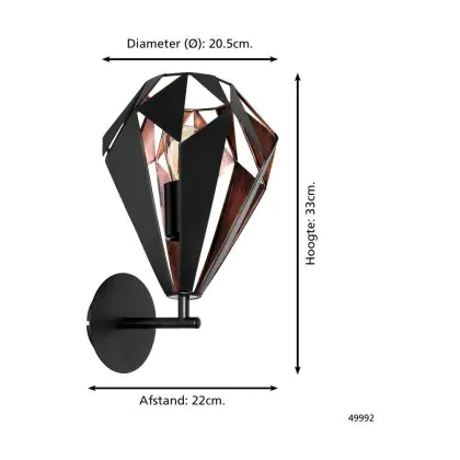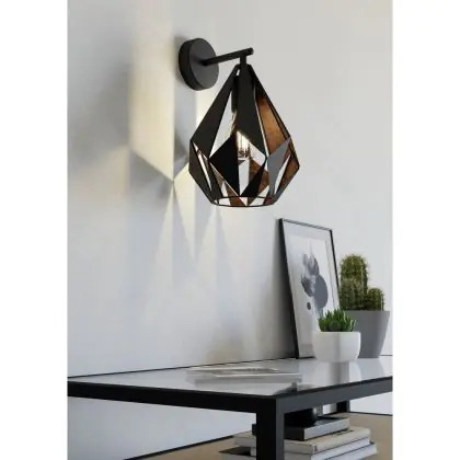 Eglo Luce Da Parete Carlton 1 Acciaio Nero Rame | IP20 - Adatto per 1x E27