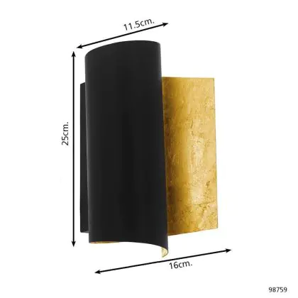 Eglo Luce Da Parete Falicetto Nero, Oro | Adatto per E27