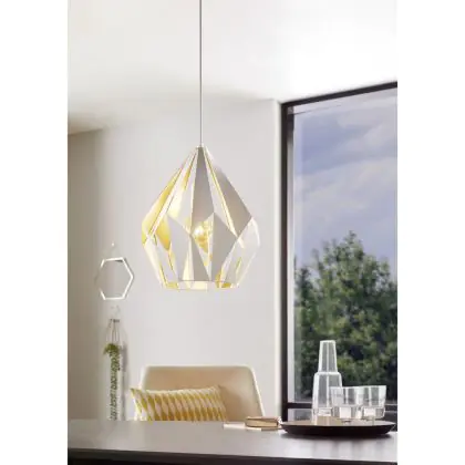 Eglo Luce Pendente Carlton 1 Acciaio Bianca Oro | IP20 - Adatto per 1x E27