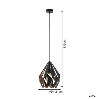 Eglo Luce Pendente Carlton 1 Nero, Rame | Adatto per E27