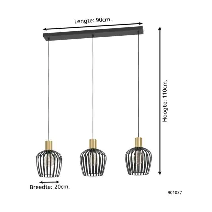 Eglo Luce Pendente Empoli Acciaio Nero | IP20 - Adatto per 3x E27