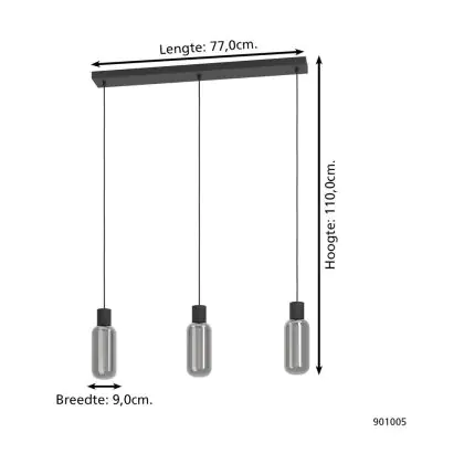 Eglo Luce Pendente Maione Acciaio Nero | IP20 - Adatto per 3x E27