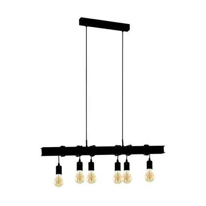 Eglo Luce Pendente Townshend 6 Acciaio Nero | IP20 - Adatto per 6x E27