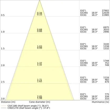 L'apertura del fascio luminoso indica l'angolo del fascio di luce proveniente da una lampada o lampadina. Si misura in gradi (D) e più piccolo è l'angolo, più piccola è l'apertura del fascio di luce.