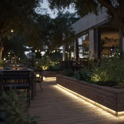 Questa fonte di luce può sempre essere utilizzata per l'illuminazione d'accento. Per usarla invece come illuminazione generale bisogna considerare l’emissione luminosa e l’apertura del fascio di luce. Questa striscia LED è lunga 5000 mm e ha una potenza luminosa di 770 Lumen. Dividendo il numero di Lumen per la lunghezza della striscia LED troverai la potenza luminosa per metro. Le strisce LED hanno generalmente un fascio di luce ad ampio angolo, che non fa eccezione per questo articolo: °. Clicca qui per scoprire quanti lumen servono in ogni stanza.